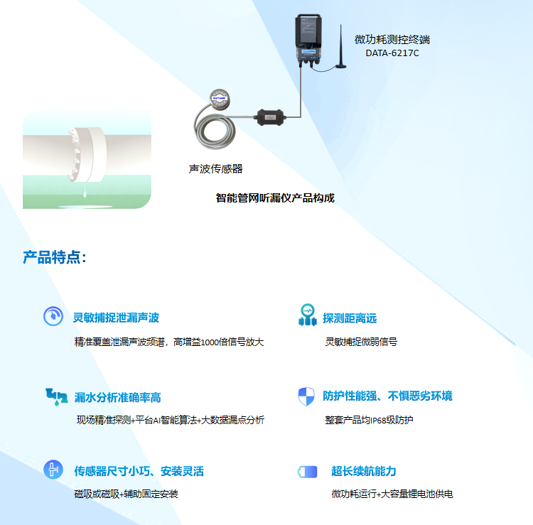 平升电子智能管网听漏仪 管网漏损监测仪 噪声记录仪 智能管道噪声监测仪由微功耗测控终端和高灵敏度声波传感器构成。声波传感器自带强